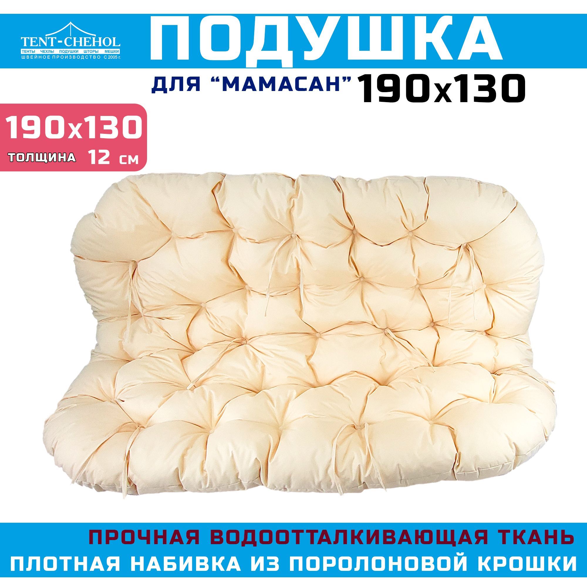 Краткое описание «Подушка для дивана Мамасан, 190х130 см, слоновая кость»