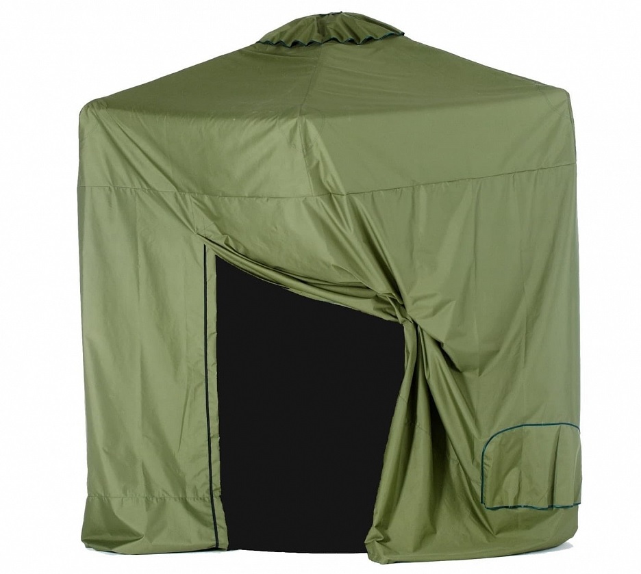 Изделие доставляется без купольной части, монтируется под основание крыши. Поможем правильно подобрать размер чехла в соответствии с площадью беседки.