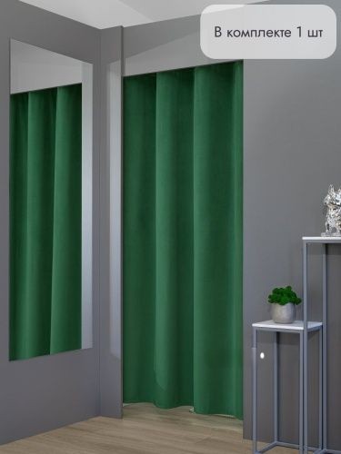 Краткое описание «Штора для примерочной и дома на люверсах бархатная цвет зеленый, 1 шт»