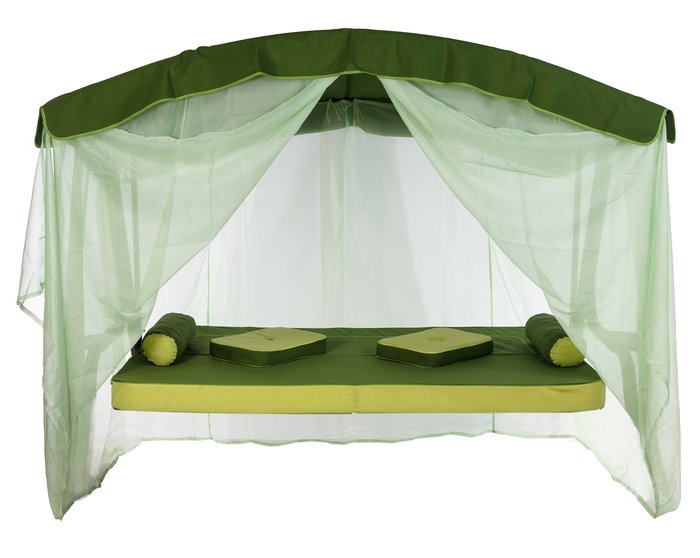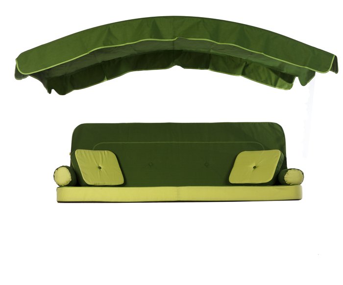 Это сменный комплект подушек, предназначенных для садовых качелей. Предназначен он для того, чтобы сделать ваше нахождение на качелях более уютным. Данные подушки предназначены для длины сидения, которая составляет 170 см, размер крыши составляет 200 на 118 см. В комплекте находится матрас, тент, шторы, а также подушки. В этой модели крыша и матрас изготавливались из специальной ткани, которые совершенно не выгорает от солнца, на ней не появляется плесень, она способна защитить от ультрафиолетовых лучей. Наполнен матрас при помощи поролона, есть молния для того, чтобы вытащить наполнитель и постирать чехол.