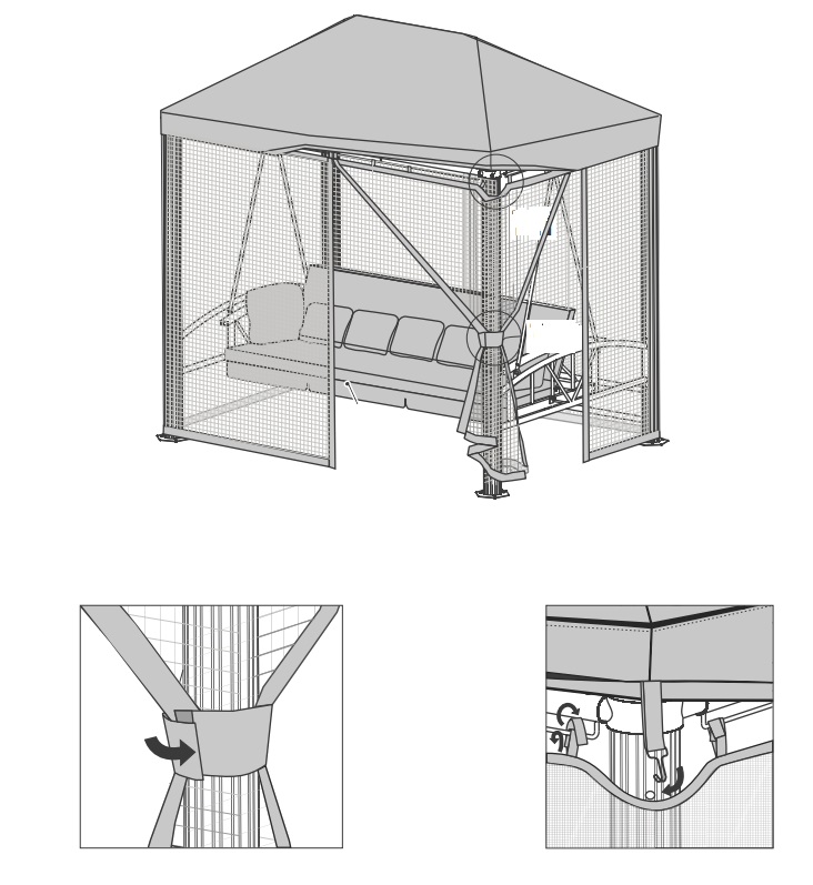 Краткое описание «Комплект из крыши / москитной сетки / матраса и подушек для беседки Барселона»
