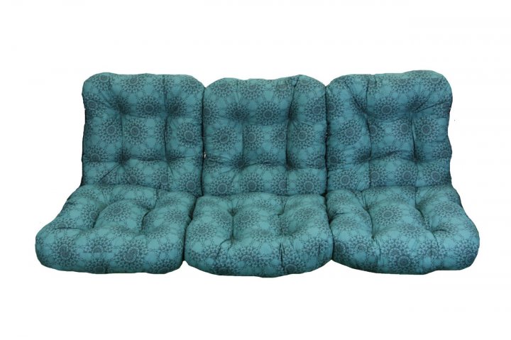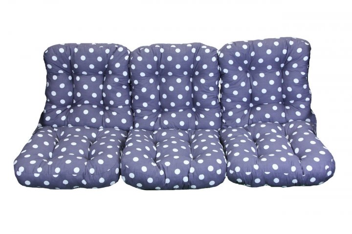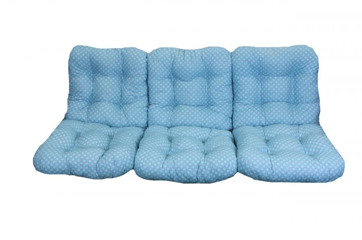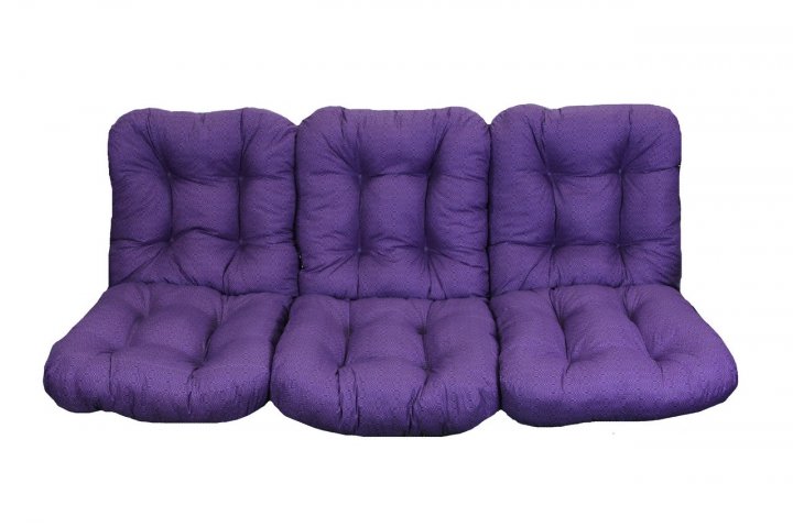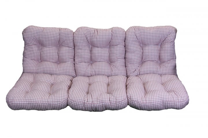 Пошив садовых подушек производится с чехлами из водоотталкивающей ткани Оксфорд, а наполнением становятся такие материалы как синтепон, полиэстер, холлофайбер и комфорель. Изделие может быть дополнено завязками, декоративным швом и пуговицами. Для наибольшей прочности и предотвращения скатывания наполнителя, подушки для дачных качелей под заказ прострачиваются лавсановой нитью по диагонали. Ромбовая прострочка усиливает декоративные качества. Если вы купите под заказ подушки для качелей разных цветов, то будет ощущение, что качели каждый раз разные, ведь изделия закрывают собой большую часть площади. К тому же, оптом дешевле!