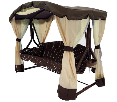 Тенты и шторы, предназначенные для садовых качелей способны очень хорошо защитить от осадков и прямых солнечных лучей. Это очень важно, так как краска на металлических частях качелей может сильно трескаться и облазить, а металл в тот момент, когда он контактирует с водой, будет подвергаться воздействию коррозии. Кроме того, негативно повлиять на лакокрасочное покрытие могут и ультрафиолетовые лучи, в данном случае краска будет шелушиться и отпадать, а цвет не будет таким ярким. Кроме того, выгореть могут и мягкие элементы, они будут выглядеть не так привлекательно. Благодаря тенту, предназначенному для садовых качелей можно защитить качели от падающих веток и птичьего помёта, из-за чего летний отдых станет хуже. Качели, у которых есть тент, выглядят намного более привлекательно, что тоже является огромным преимуществом в пользу выбора тента. Также такой тент может продаваться вместе с противомоскитной сеткой, благодаря чему вы также будете защищены от насекомых, которые сильно могут омрачить летний отдых.