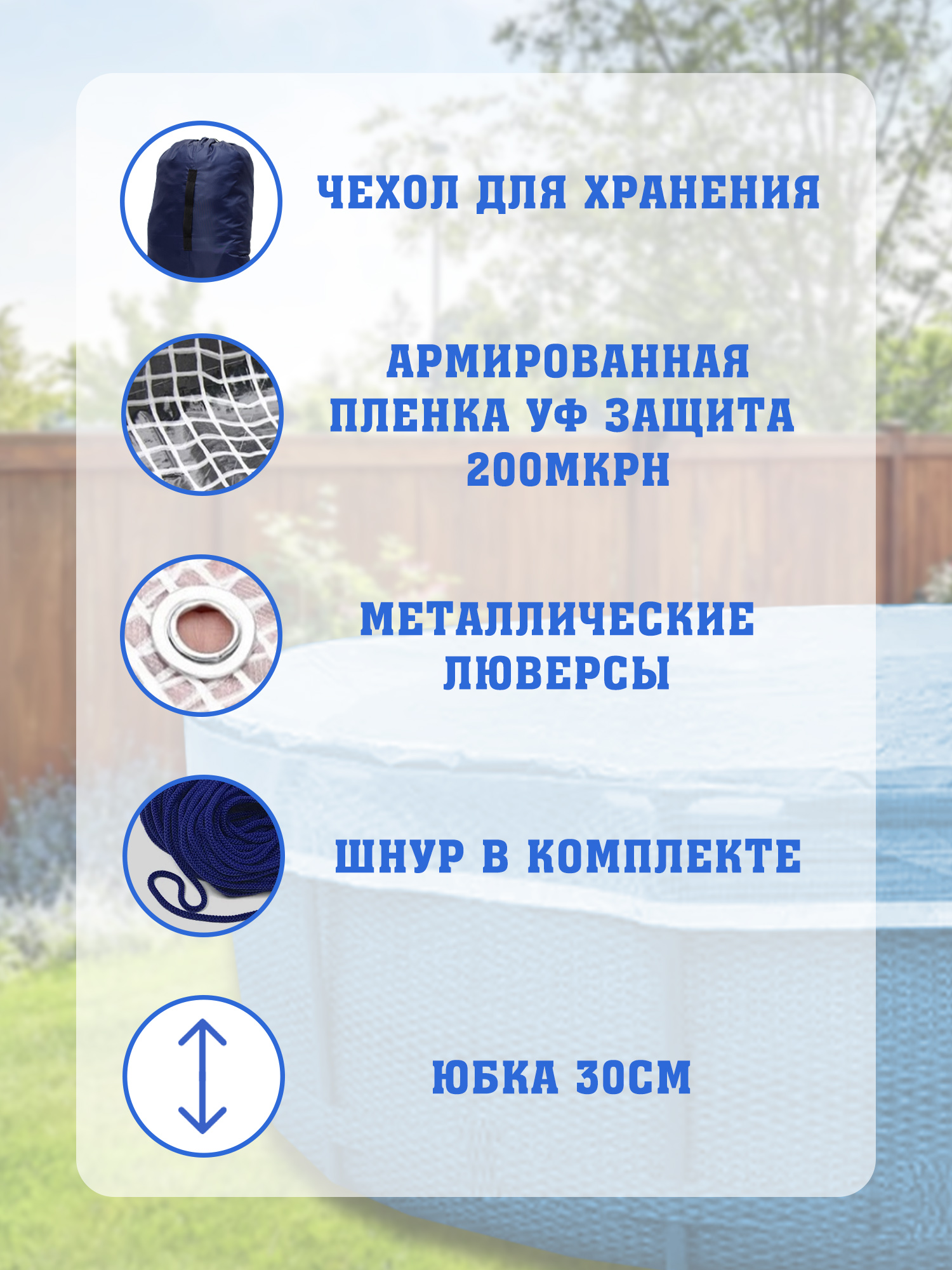 Краткое описание «Тент d244см для каркасного бассейна из армированной пленки»